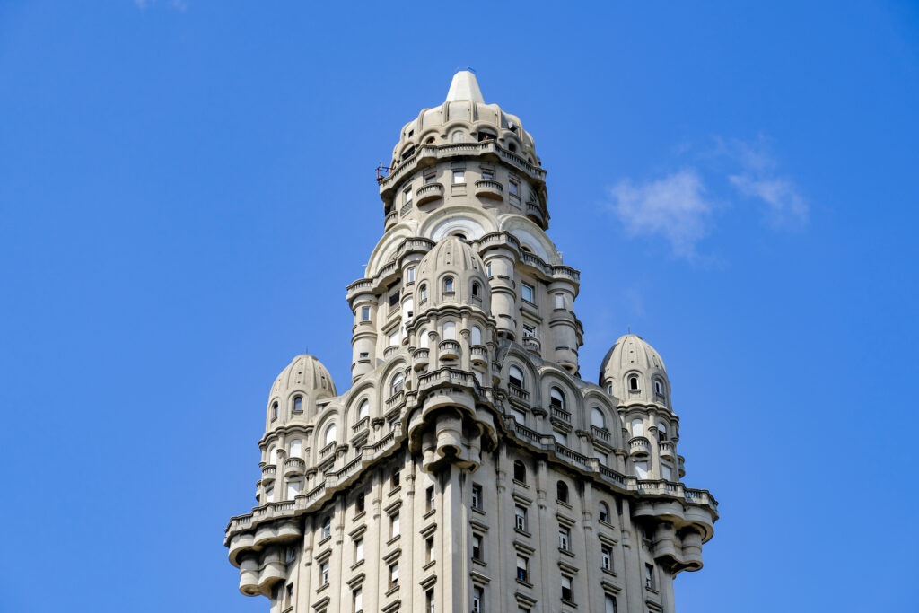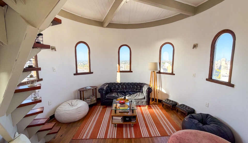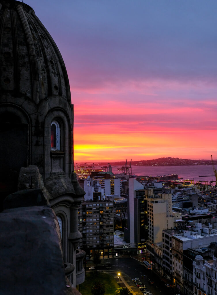 Palacio Salvo is a unique building dominating the Plaza Independencia square, and the unofficial emblem of Montevideo. Completed in 1928, the building was briefly the tallest structure in South America at 106 meters. I thought the building looked like an elaborate chess piece, or an ornately decorated jewelry box. It features an eclectic mash-up of different architectural styles – from Art Deco and Neo-Gothic, to Renaissance. My AirBnB stay was in one of the tower units on the 19th floor of Palacio Salvo, and was definitely one of the more memorable places I’ve spent a night anywhere. The unusual curved angles, curious room shapes, thick concrete walls and lookout windows over the city made it seem like a Gaudi-esque abode. The vantage points form the balconies were perfect to catch the sunset at dusk and the sunrise at dawn.